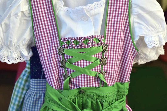 Wie bunt ist „zu bunt“? Darüber philosophieren die Trachtentrends und pendeln zwischen monochromen Looks sowie Colour Blocking. Im Monochrom-Bereich, der nun auch Einzug in die Welt der Trachten feiert, wird in der Regel ein Farbton in verschiedenen Abstufungen getragen. Besonders beliebte Grundfarben sind Pistazie, Lavendel, Vanille und Rose. Diese harmonische Präsentation lässt sich durch entsprechend gestaltete Accessoires geschickt abrunden. Wenn die Tage wieder länger dauern, darf es hingegen etwas bunter werden. Die Trachtenmode im Frühjahr stützt sich vor allem auf Colour Blocking, das entweder zwei verwandte oder zwei kontrastierende Farbtöne kombiniert. Einer davon darf kraftvoll leuchten. Die strahlenden Varianten interpretieren klassische Trachtenfarben gekonnt neu.